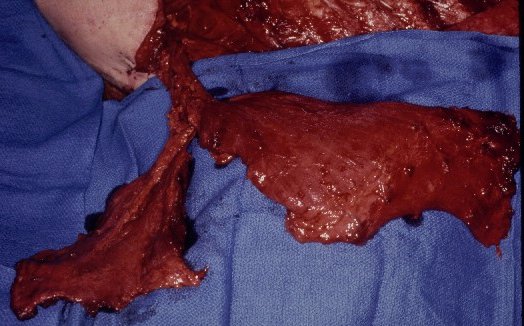 Very large defects can be covered with combined flaps from the subscapular axis, as in this combined latissimus - serratus flap.