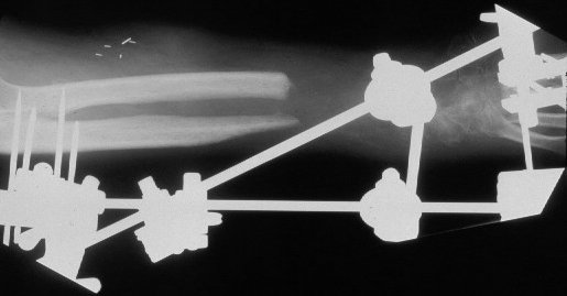 Segmental both bone forearm skeletal defect after debridement. The