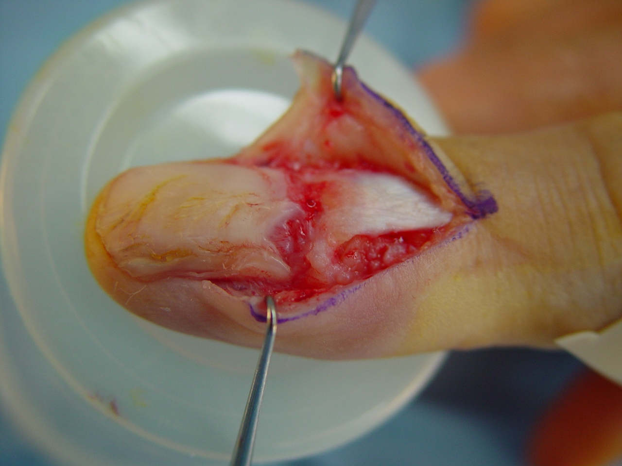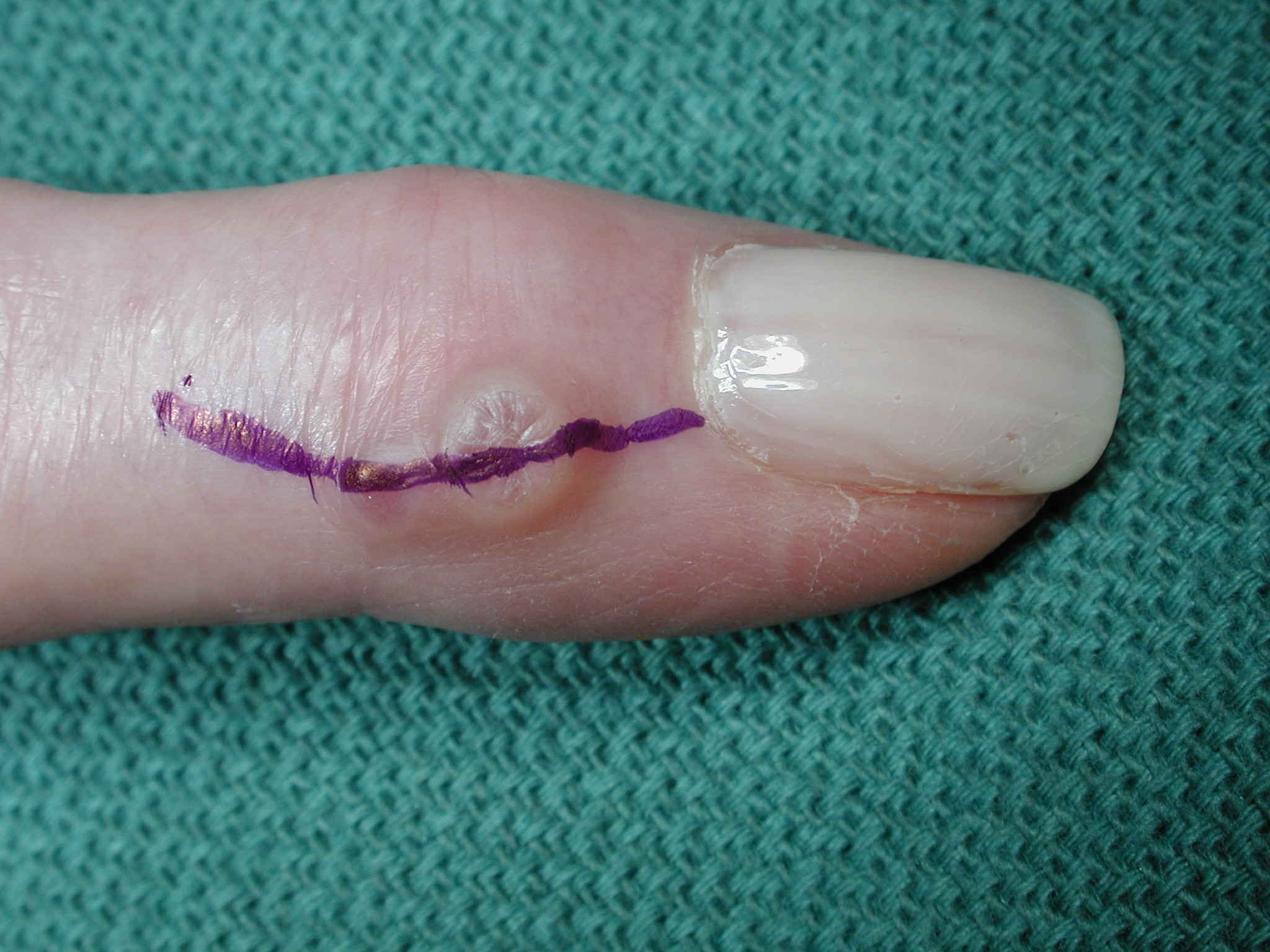 splitting incision I learned from Damien Ireland. Mucous cysts arise from the dorsal DIP joint capsule, often associated with small dorsal osteophytes of the distal phalanx. The cyst itself is a secondary effect and needs no treatment.