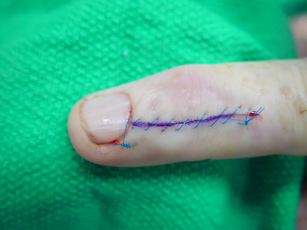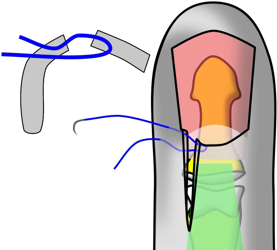 - Close the deep eponychial surface with a pullout suture and then close with a simple running suture.