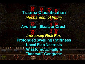 The mechanism of injury is the primary determinant of wound vascularity, healing potential, and zone of scarring. Reduction in local perfusion as well as extent of interstitial scarring are directly related to the amount of energy absorbed per volume of tissue during injury. Actual zone of injury must be considered in addition to the size of the skin wound. |